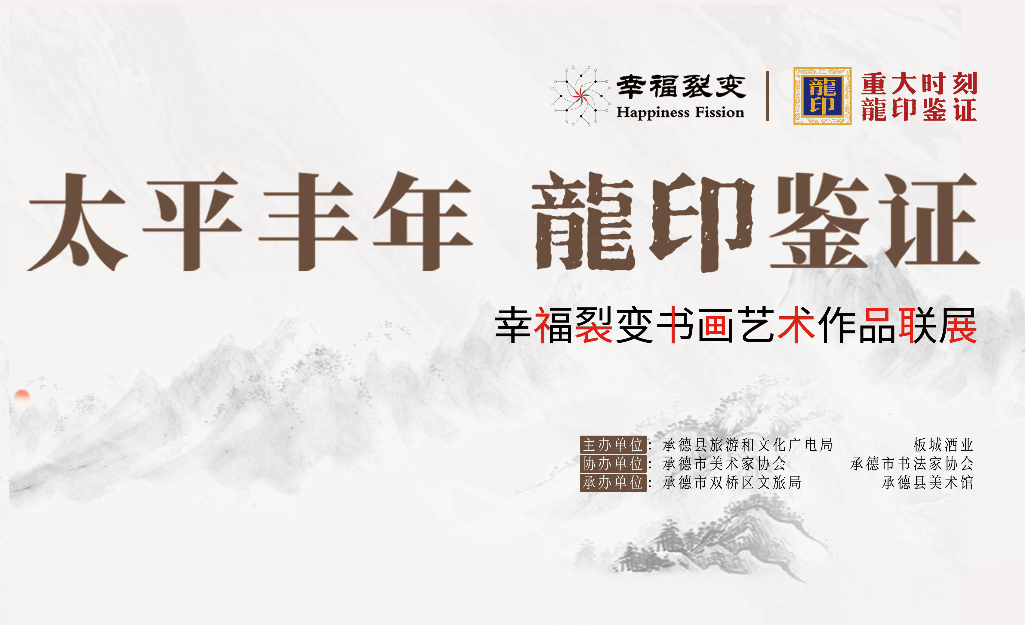 太平豐年,龍印鑒證;9月19日,由承德縣旅游和文化廣電局、板城酒業(yè)主辦;承德市美術(shù)家協(xié)會、承德市書法家協(xié)會協(xié)辦;承德市雙橋區(qū)旅游和文化局、承德縣文化館承辦的“太平豐年龍印鑒證——幸福裂變書畫藝術(shù)作品聯(lián)展”活動盛大開幕。