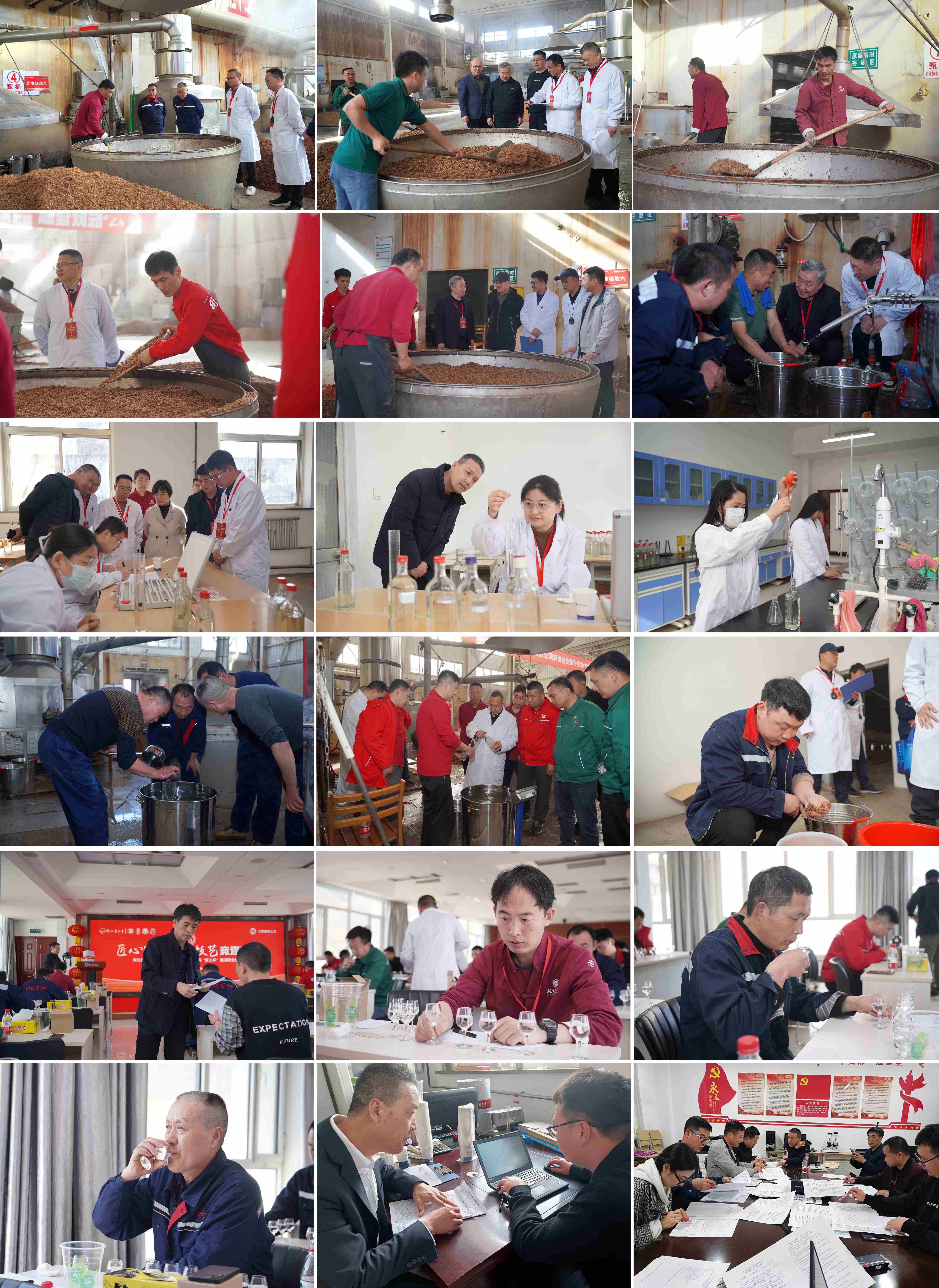 匠心傳承,技藝精進;活動現(xiàn)場中,公司領導對“匠心杯”進行大力支持與全場指導,評委團隊以嚴謹?shù)膶I(yè)視角對選手的各個環(huán)節(jié)進行評審打分,現(xiàn)場服務人員為選手比賽精心準備,配合活動竭誠服務,選手歷經三天的釀酒實操技能、理論考核、白酒品評等項目的考核比拼,選手們同臺競技各展風采,賽出了水平,賽出了“同心同德、團結協(xié)作"的競賽風格,全體釀酒人展現(xiàn)出高超的釀酒技藝和飽滿的精神風貌。