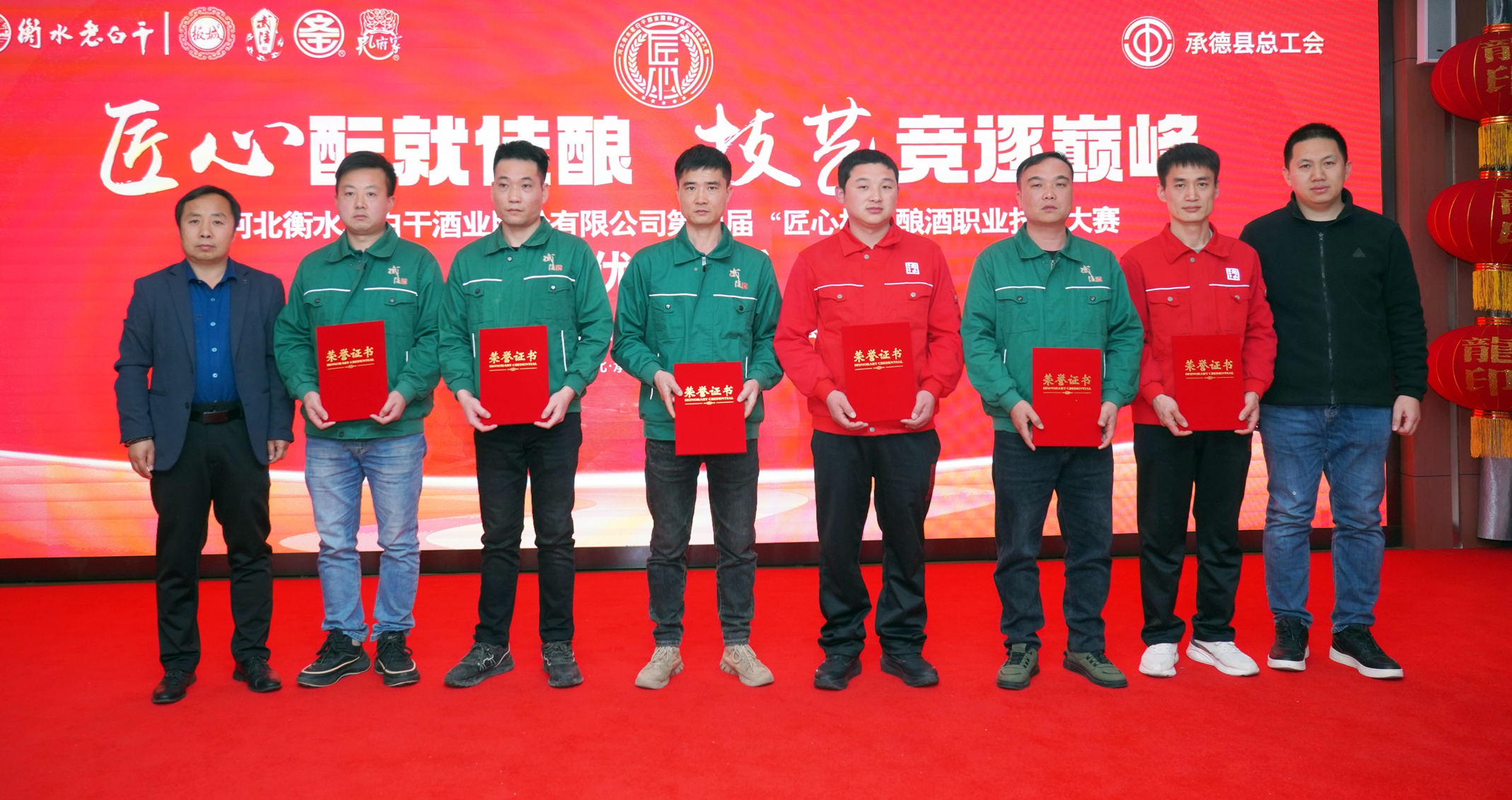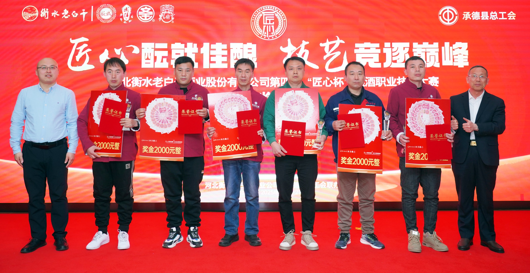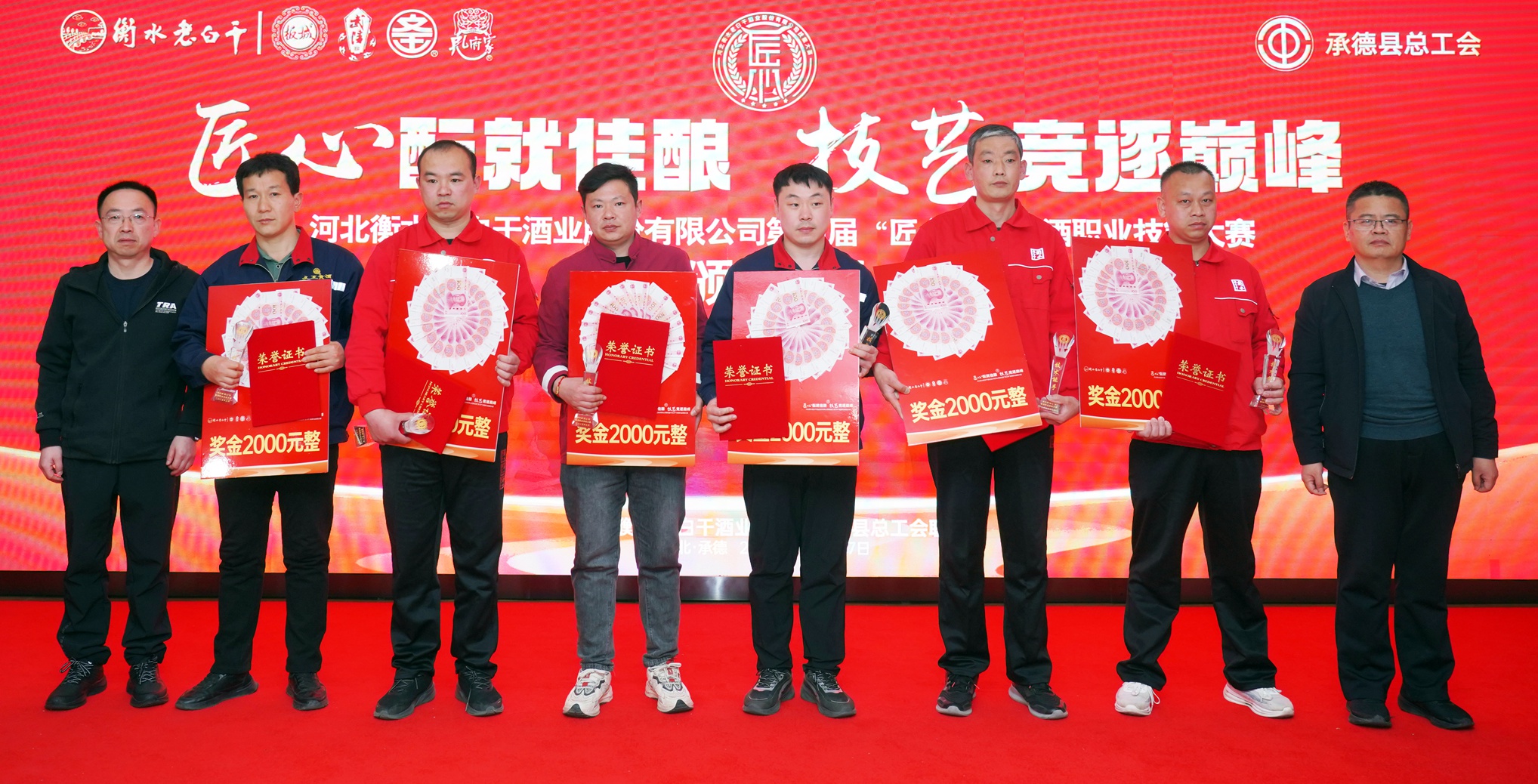 在活動閉幕式上,承德縣總工會黨組書記、常務副主席溫明忠,衡水老白干酒業(yè)公司副董事長張煜行,板城酒業(yè)黨委書記、總經理張春生,衡水老白干酒業(yè)公司工會副主席孔衛(wèi)東,板城酒業(yè)生產總經理趙志剛,文王酒業(yè)生產總經理孫偉,孔府家酒業(yè)生產總經理顏世昕,武陵酒業(yè)技術總監(jiān)張福艷,衡水老白干酒業(yè)公司技術中心副主任王新磊,以及各公司的參賽選手、裁判、領隊及相關部門負責人出席活動。